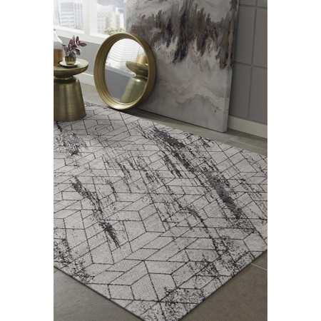 5 x 8 ft. Abstract Rings Area Rug - Grey & Gold