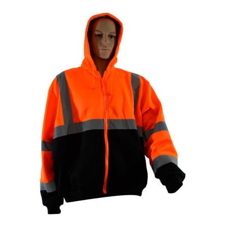 Petra Roc Hooded Sweatshirt W/Liner, ANSI Class 3, 2 Slash Pockets, Polar Fleece, Orange/Black, XL