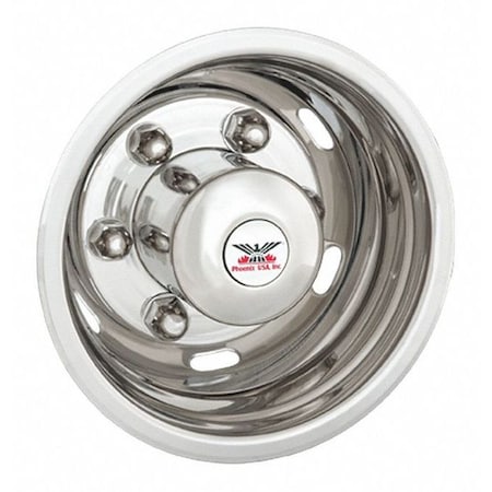 WHEEL SIMULATORS Fits 17 Inch Diameter 8 Lug Dual Wheels Polished Stainless Steel BoltOn Set of