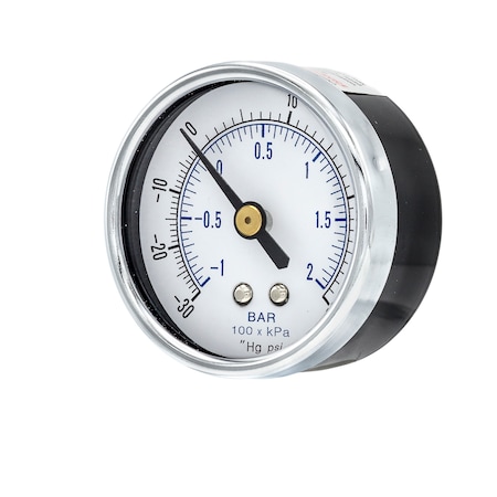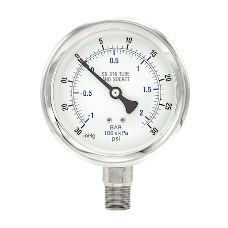Gauge, 2.5", 30/0VAC, 1/4"LBM, SS, Front Flg, 2 1/2 in Dial, 1/4 in NPT Male Lower Back Location