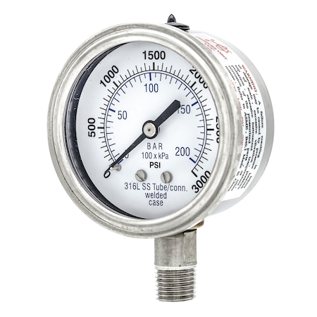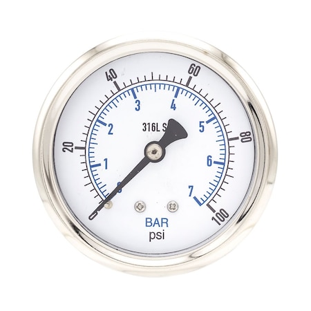 Gauge, 2-1/2", 0-100psi, 1/4"LM, SingleScale, 2 1/2 in Dial, 1/4 in NPT Male Lower Location