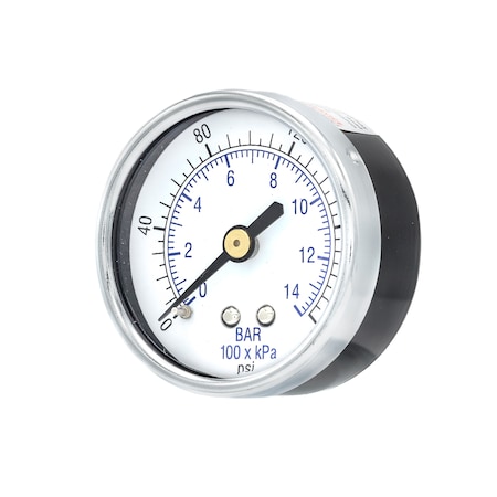 Air Gauge, 1-1/2", 0/160psi, 1/8"Back Mount, 1 1/2 in Dial, 1/8 in NPT Male Center Back Location