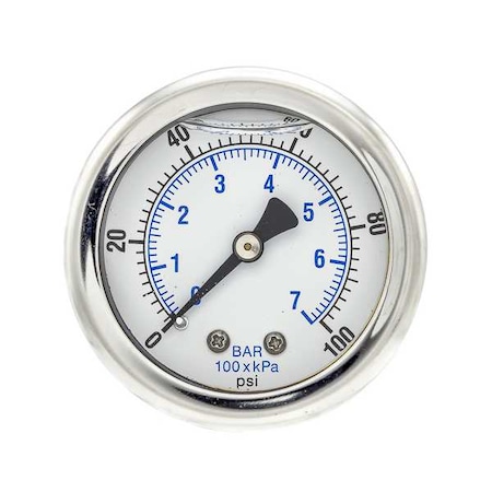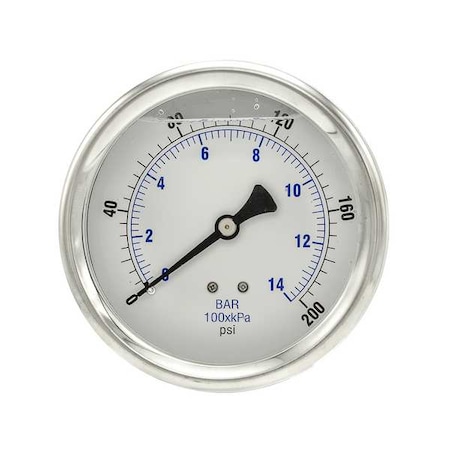 Panel-Mount Pressure Gauge, 0 to 200 psi, 2 1/2 in Dial, 1/8 in NPT, Center Back Location