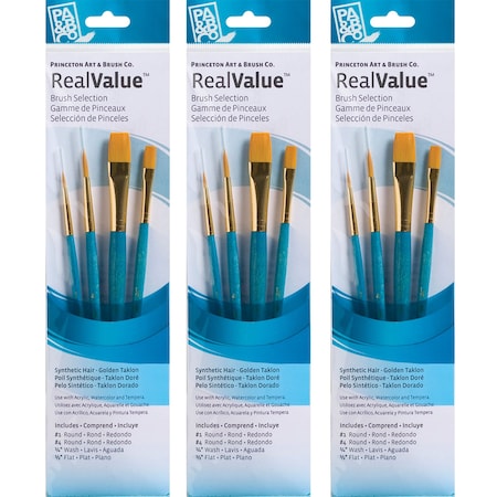 RealValue Brush Set, Gold Taklon Bristles, Short Handle Mixed Media Paintbrush, 4-Piece Set, 3PK