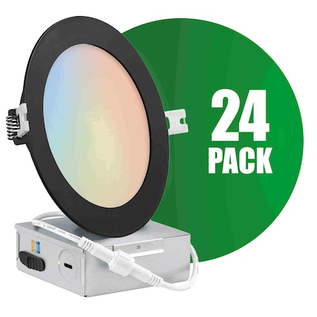6-Inch Slim-Panel Recessed Light Black, 5CCT, Wet Location, 24PK