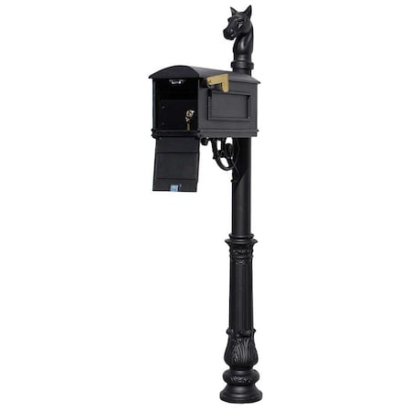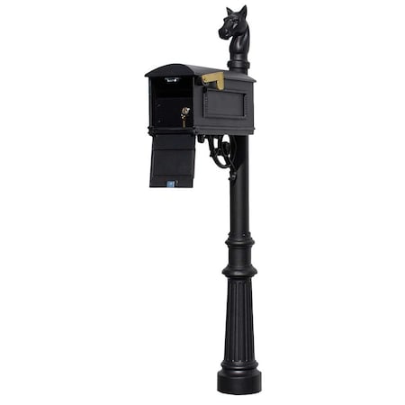 The Hanford Triple Black Mailbox Post System with Scroll Supports & Mounting Plate-60 x 28 x 3 in.