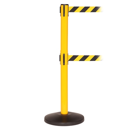 Retractable Belt Barrier, Yellow/Black, 13 ft Length, Black