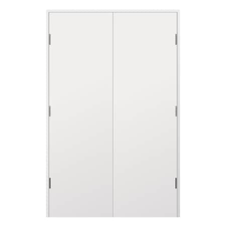 36 in. x 80 in.Bi-Parting Solid Core White Primed French Door Catch Ball Flush Panel Shiny Nickel