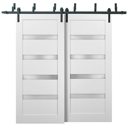 Sturdy Dbl Barn Door 36 x 96in W/, Light Grey Oak W/ Frosted Glass, SS 13FT Rail Hangers Heavy Set