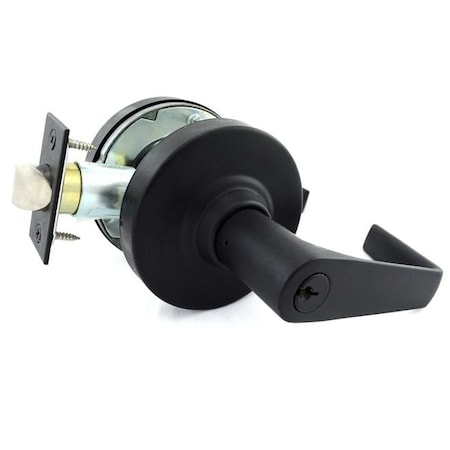 Storeroom Saturn Lever C Keyway, 2-3/4" Deadlatch, ANSI Strike Matte Black