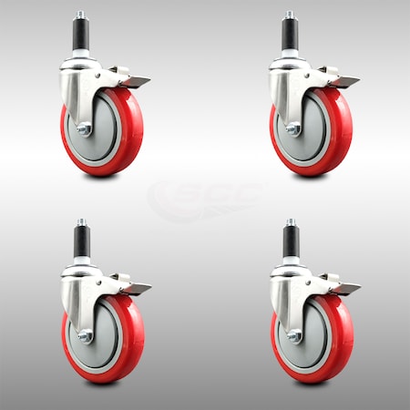 3.5'' Thermoplastic Rubber Wheel Swivel 1-3/4'' Expanding Stem Caster Set 2 Brakes, 4PK