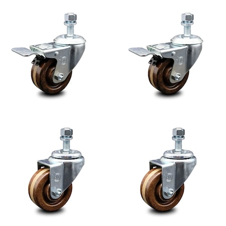 3.5'' SS Thermoplastic Rubber Wheel Swivel 1-5/8'' Expanding Stem Caster Set 2 Brakes, 4PK