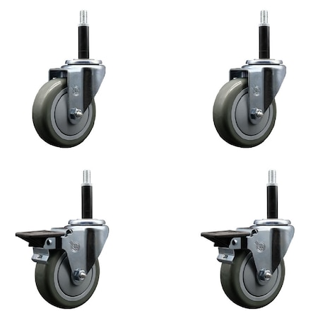 6'' Thermoplastic Rubber Wheel Swivel 1-1/8'' Expanding Stem Caster Set 2 Brakes, 4PK