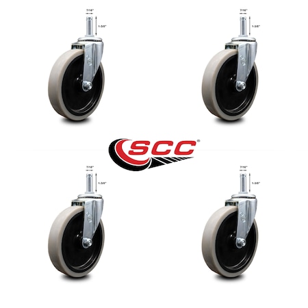 2 Inch Soft Rubber Wheel 5/16 Grip Neck Stem Caster, 5PK