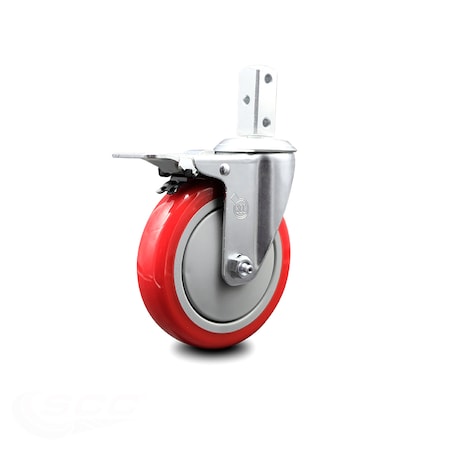 5 Inch Thermoplastic Rubber Wheel Swivel 34 Inch Threaded Stem Caster Set with Brake SCC