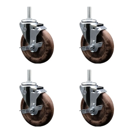 35 Inch Maroon Polyurethane Wheel Swivel 34 Inch Threaded Stem Caster Set with Brake SCC
