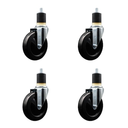 5 Inch Nylon 10 MM Threaded Stem Caster Set 2 Brakes SCC
