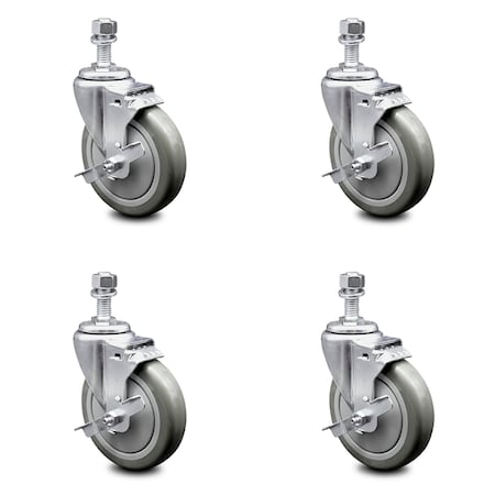 4 Inch Maroon Polyurethane Wheel Swivel 34 Inch Threaded Stem Caster Total Lock Brake SCC
