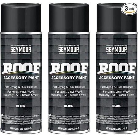 Roof Accessory Paint, Flat Black net 12 oz., 3PK