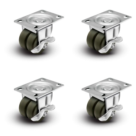 50mm Non-Marking Nylon Swivel Caster, Side Brake, Loads Up To 75 lb