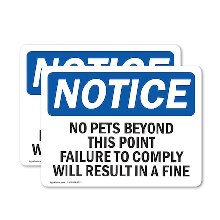 No Pets Beyond This Point Failure To Comply OSHA Notice Sign, Vinyl Decal, 18in W x 12in L, 2PK
