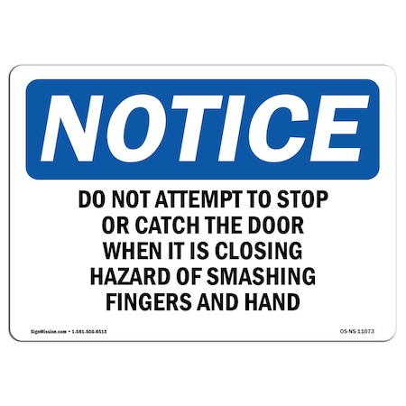OSHA Notice, 3.5" Height, Do Not Attempt To Stop Or Catch The Door Sign, 5" X 3.5", Landscape