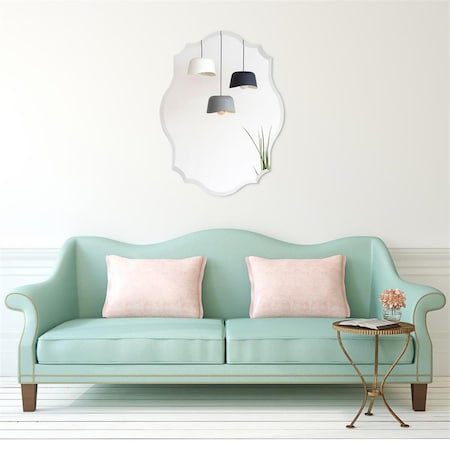 Frameless Beveled Oblong Scalloped Wall Mirror
