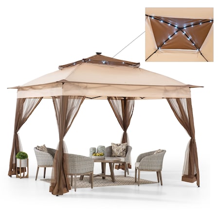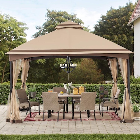 10x12 ft. Wood Gazebo, Outdoor Patio Steel Hardtop Gazebo, Cedar Framed Wooden Gazebo, Dark Brown