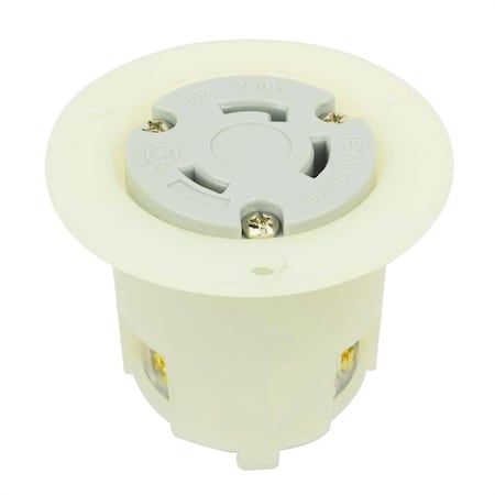 Flanged Locking Receptacle, L6-30R, 30 A, 250V AC, White