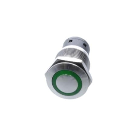 Anti Vandal 19mm Dia, 8P DPDT ON-ON, Green LED, IP67