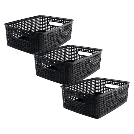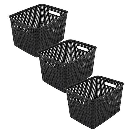 Plastic Weave Bin, Large, Black, 3PK