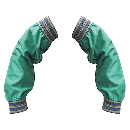Fire Resistant Cotton Sleeves, FR Welding Sleeves, Elastic Wrist/Top, 18 in L, Green, 1 Pair