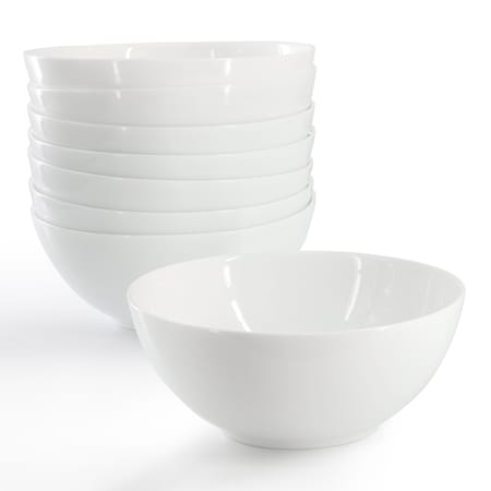 Olstead 8 Piece 6.8 Inch Round Break-Resistant Tempered Opal Glass Bowl Set in White