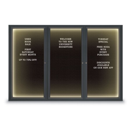 96"x48" 3-Door Enclosed Outdoor Letterboard, Blue Felt/Satin