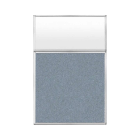 Hush Panel Configurable Cubicle Partition 4' x 6' W/ Window Powder Blue Fabric Frosted Window