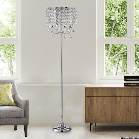 IMF482-4 Ernest 4-Light Crystal Drum Shade Floor Lamp, Chrome