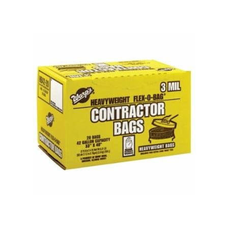 FLEX-O-BAG Trash Can Liners and Contractor Bags, 42 gal, 3 mil, 33 in X 48 in, Black, Heavyweight