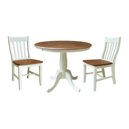 Rectangular Fixed Top Table W/ 2 Chairs, 36 in W, 29.1 in L, 36 in H, Parawood, Hickory/Shell, 3