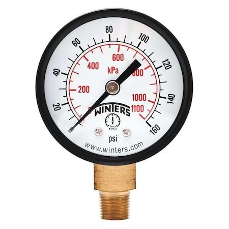 Economy 2" 0-160 psi/Kpa 1/8" Npt Btm, 2 in Dial, 1/8 in NPT Bottom Location, Steel Case Material