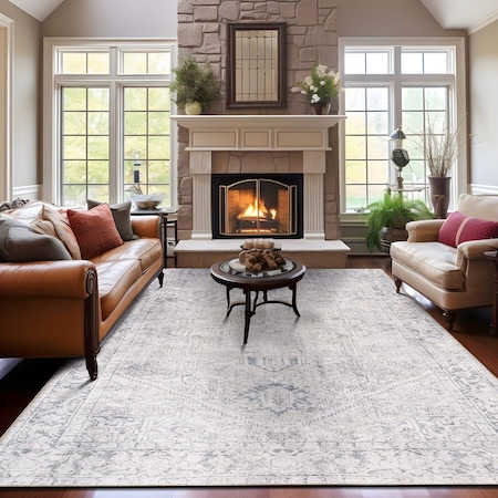 Beige Vintage Washable Rug - Low Pile, Subtle Pattern for Neutral Spaces 10 ft x 14 ft