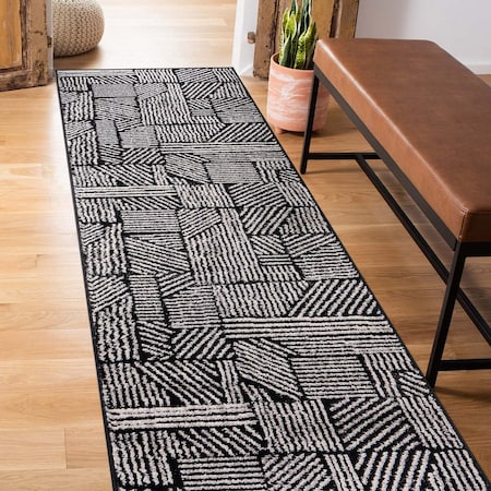 Abstract Arch Shag Runner Rug 2 ft 3 in x 8 ft Anthracite
