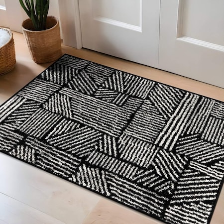 Contemporary Boho Stripes Non Shedding Soft Area Rug 2 ft x 3 ft Black