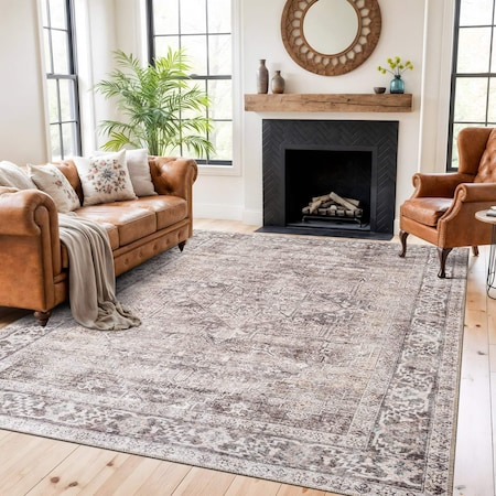Beige Classic Washable Rug - Flat Pile, Non-Slip, Versatile for Any Room 7 ft 7 in x 9 ft 6 in
