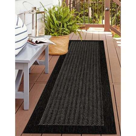 Contemporary Bordered Weather Resistant Reversible Indoor/Outdoor Rug 2 ft x 7 ft Black