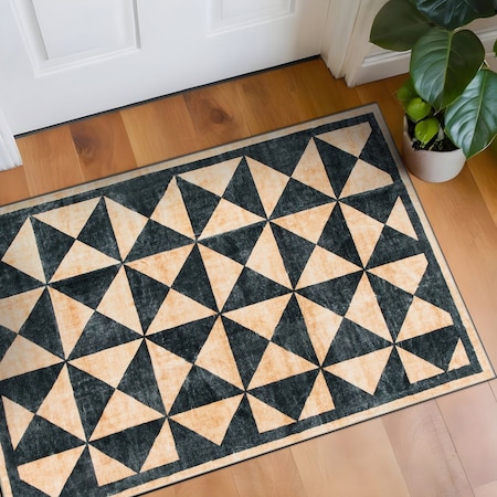 Geometric Diamond Washable Non Slip Area Rug 2 ft x 4 ft Natural