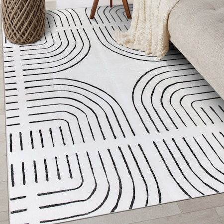 Bohemian Lines Washable Non Slips Area Rug 3 ft x 5 ft Ivory
