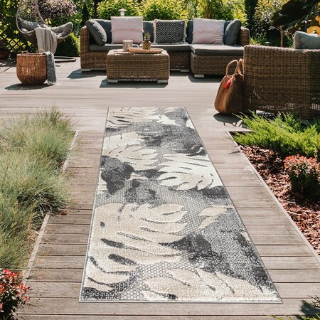 Palm Floral Leaves Indoor/Outdoor Runner Rug 2' x 7' Runner Gray