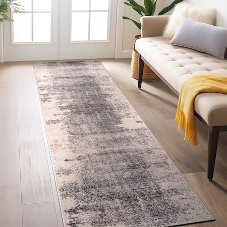 Distressed Abstract Non Shedding Soft Area Rug 2' x 7' Gray