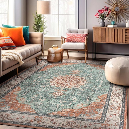 Vintage Inspired Machine Washable Non Slip Area Rug 4 ft x 6 ft Olive
