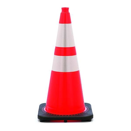 Traffic Cone, Night or High Speed Roadway (45 mph or higher), 7 lb, Reflective, 28 in Height, Orange